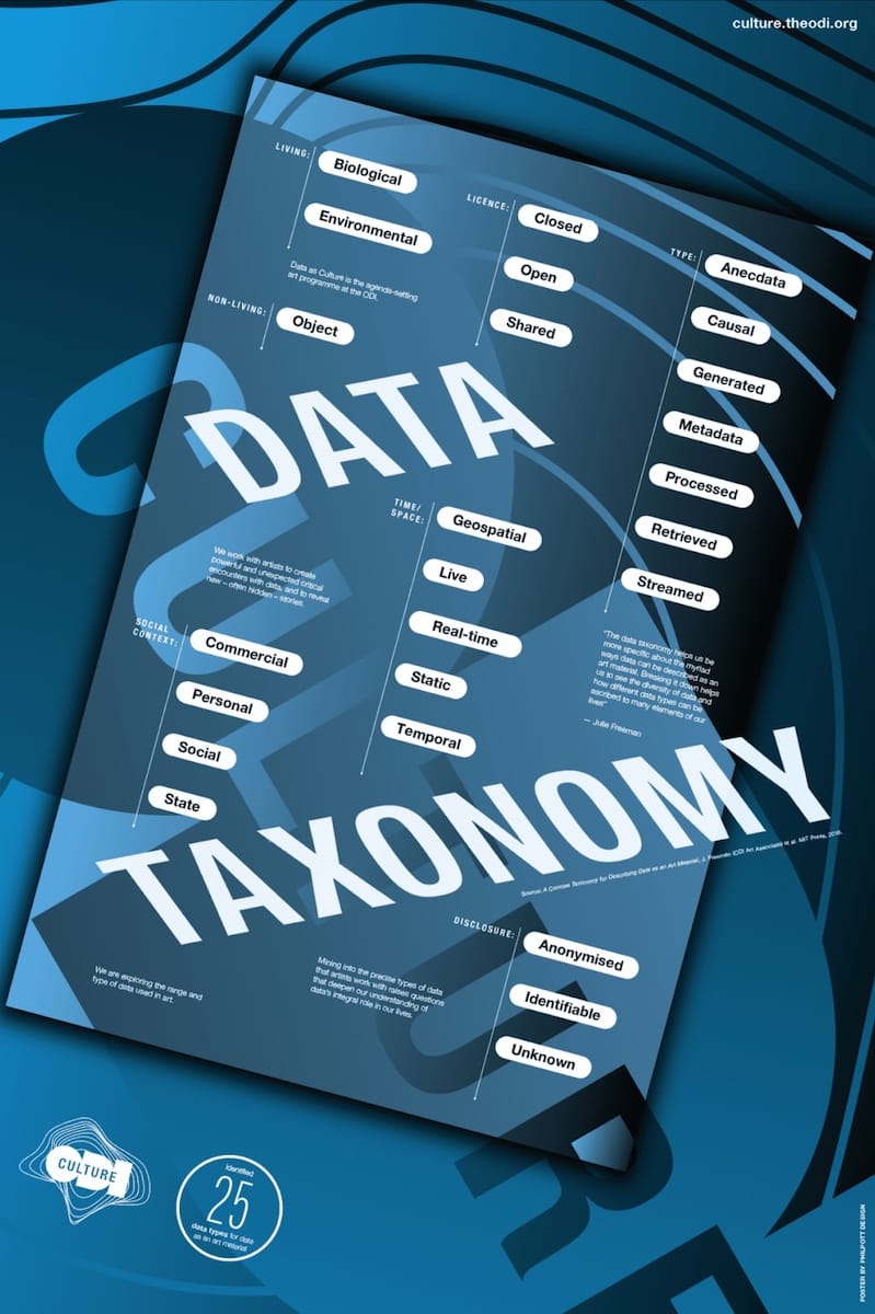 The taxonomy has been developed by Dr Julie Freeman, Queen Mary University of London, with input from the ODI. This work is supported by the Media and Arts Technology programme, EPSRC Doctoral Training Centre EP/G03723X/1.